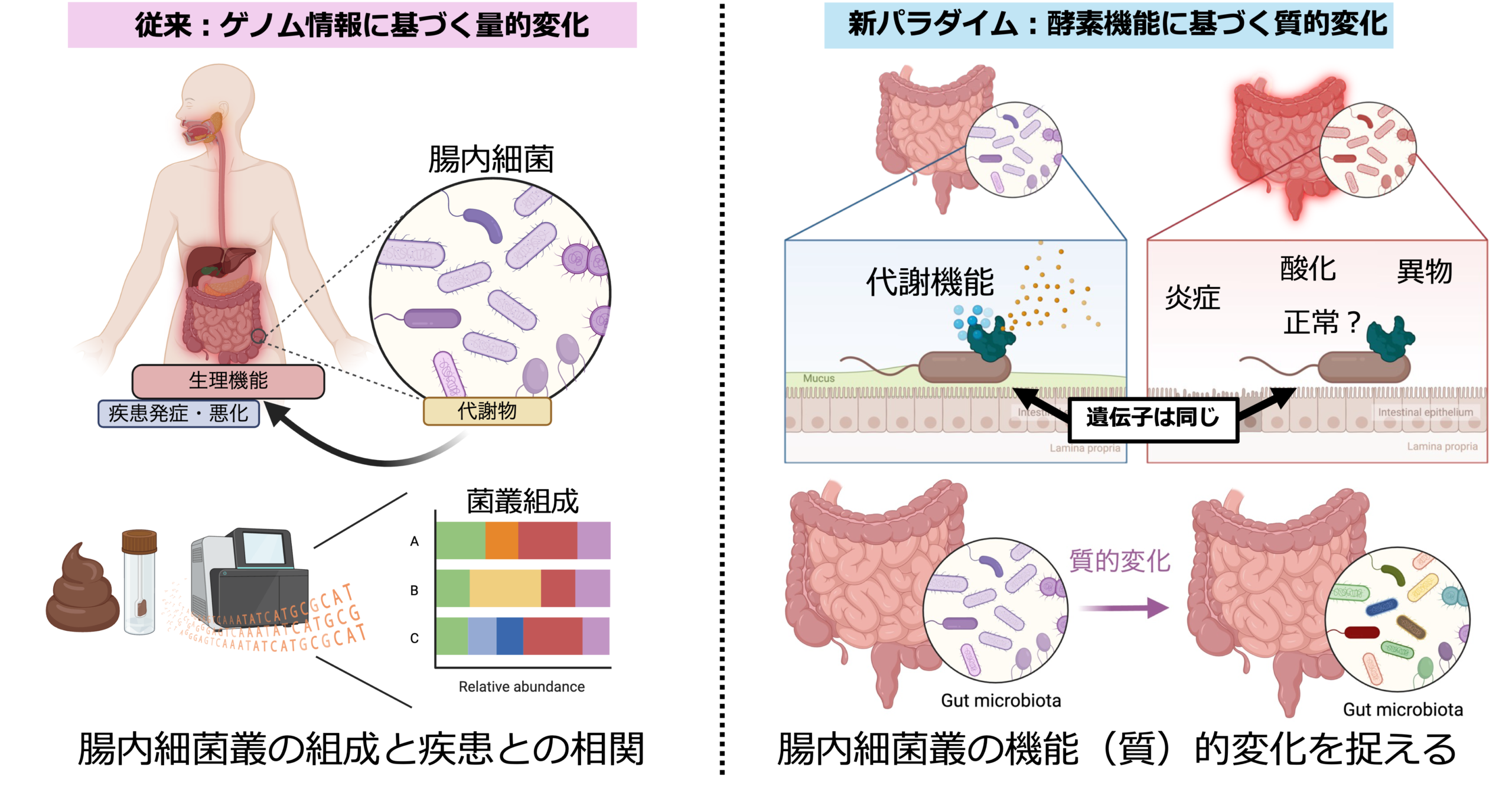 本研究室は、菌叢の量的な変化に頼らず、タンパク質の化学修飾や構造変化といった分子レベルの“質的変化”を直接評価するという新しい視点を提案します。